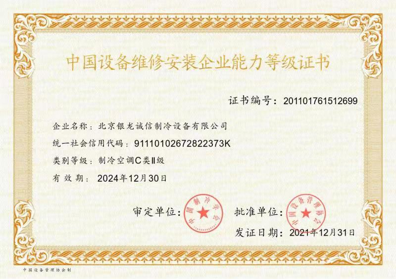 2007年:獲準(zhǔn)成為北京市制冷行業(yè)技術(shù)學(xué)會(huì)理事單位; 2009年:獲得北京市大興區(qū)百?gòu)?qiáng)企業(yè)認(rèn)證; 2009年:獲得國(guó)家高新技術(shù)企業(yè)認(rèn)證; 2011年:獲北京市安全生產(chǎn)先進(jìn)企業(yè)稱(chēng)號(hào),節(jié)能環(huán)保先進(jìn)單位; 2012年:通過(guò)了國(guó)家高新技術(shù)企業(yè)復(fù)審; 2013年:公司董事長(zhǎng)獲"2013北京先進(jìn)企業(yè)家"榮譽(yù)稱(chēng)號(hào); 2014年:獲2014年度中國(guó)冷庫(kù)工程安裝設(shè)計(jì)造價(jià)行業(yè)十大品牌;